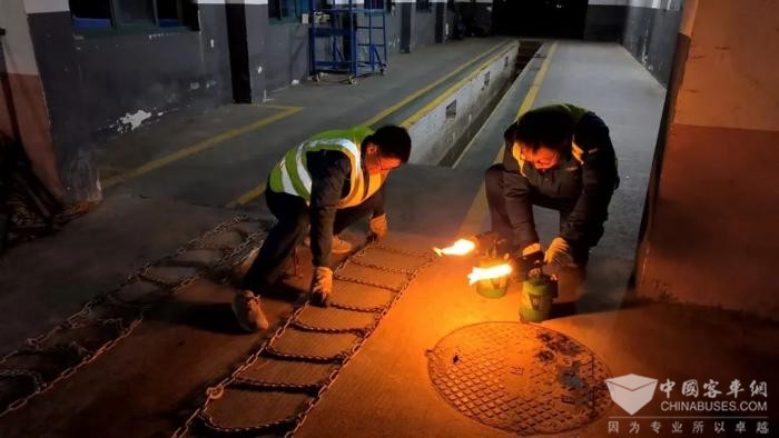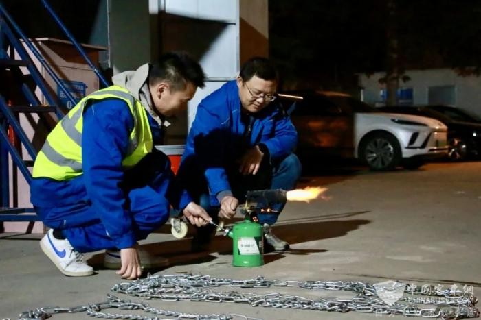 同时机务人员进行防滑链安装拆卸,铺设防滑草垫,进行喷灯演练等,成立应急抢修队伍,为应对恶劣天气做足准备。