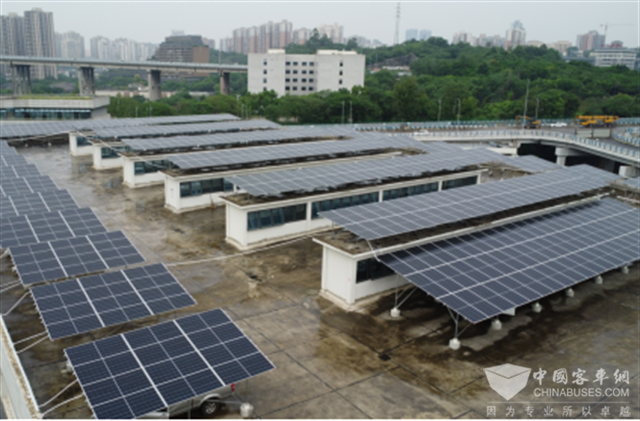 走进福佑路公交站场,一片光伏车棚引人注目,新能源公交车在光伏板下有序进行光伏充电。一旁的微网能量调度系统大屏幕上,显示着逆变器运行情况、光伏板功率数等数据。