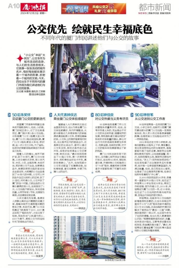 厦门公交抓住新形势下的变化,主动融入城市综合交通出行体系,在运用5G技术、接驳轨道交通、开通定制公交和推进公交“六进”服务、提高司乘文明等诸多方面都取得了可圈可点的成绩。
