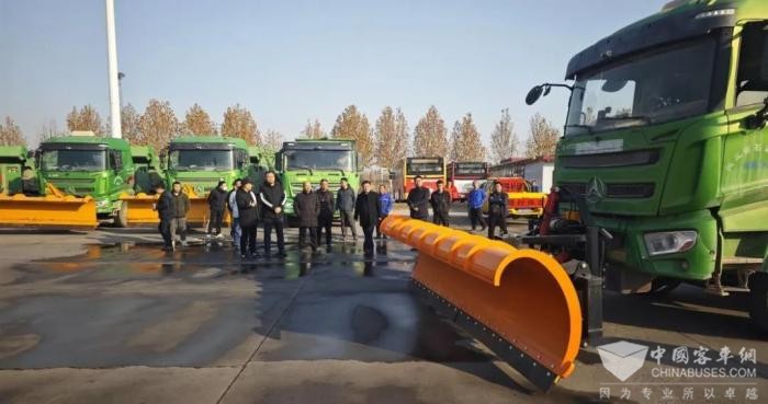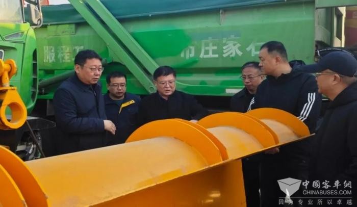 2024年12月4日上午,市公交集团主要领导到东部运营分公司石家庄东站88路公交场院调研指导新能源电动渣土车改装铲雪车工作,技术信息部、工程服务公司、汽车维修公司、东部运营公司运输大队相关负责同志陪同调研。