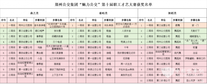 紧跟着曲艺类节目音乐表演唱《“红领天使”引发展、公交医院四十年》用音乐表演唱的形式展示出公交医院四十年如一日,用一片丹心为职工市民健康保驾护航,群口相声《快与慢》用巧妙的语言艺术讲述了公交日常的趣味故事,引得现场掌声不断,情景剧《三个电话》讲述了公交女车长在平衡工作家庭中的不容易,在家人的理解和支持中共同收获成长,戏曲《花木兰荣归故里--人逢喜事精神爽》用如云流水的声腔带大家重温豫剧魅力,小品《让工作充满快乐》通过车长周海燕分享自己的行车心得,带动身边人用更加积极的态度擦亮公交服务品牌,情景剧《画扇面》在琵琶声中用温婉柔美的唱腔画出郑州美景扇面,情景剧《传承》讲述了公交修理车间师带徒,共同守护场区环境的成长故事,小品《白搁这儿quo了》展示了公交人在承担出行服务的同时用热情传播社会正能量。