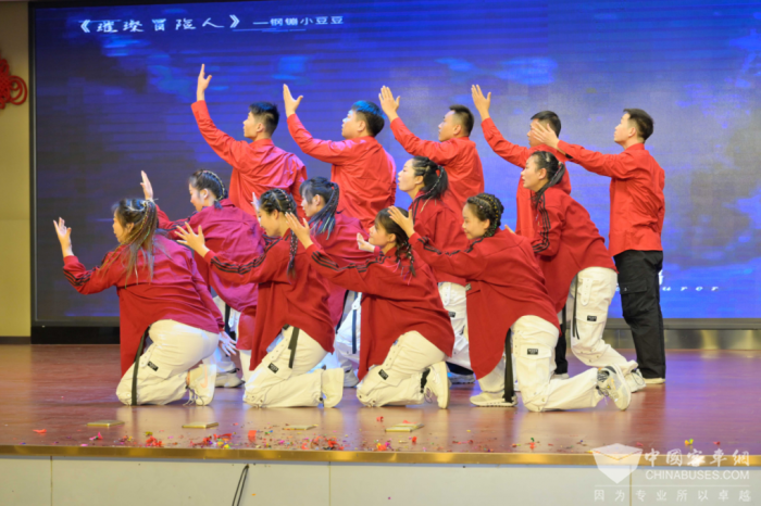 群舞《家·门》用宏达的主题和细节的表演手法,展现了家与国之间的守望,《无影灯下》一群公交天使用精湛的技术和暖心的守护与病魔抢夺职工的健康,舞蹈《璀璨冒险人》以紧张激烈的节奏展现出公交职工蓬勃向上的生命力和创造力,舞蹈《较量》用男女职工之间的比拼展现出公交人争优创先、优质服务的精彩瞬间,现代舞《出征》,舞蹈《匠心筑梦》用舞蹈编排展现了修理车间的工作日常,展示了修理人用不怕苦不怕累的精神全力保障公交车辆性能良好,舞蹈《天地龙鳞》通过服装设计和舞蹈动作为大家呈现了一场传统文化的视觉之美,舞蹈《万疆》通过优美的旋律展现了美丽中国下人民的美好生活,舞蹈《勇往直前》通过紧凑的舞蹈编排展现了公交职工无惧困难,奋勇争先的精气神。