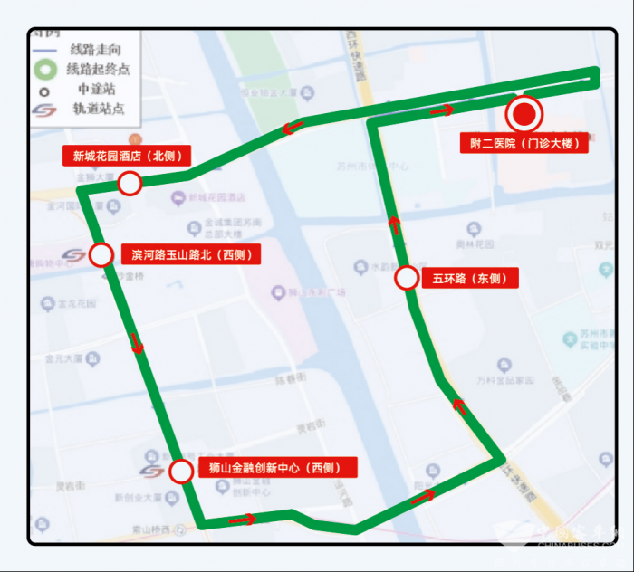 此外,9090路“附二院健康专线”还同时与2条轨道线路实现了无缝衔接。乘客可以在“滨河路玉山路北(西侧)”公交站换乘轨道交通3号线“沙金桥”站,或者在“狮山金融创新中心(西侧)”公交站换乘轨道交通5号线“索山桥西”站。自此,9090路与原有的9092路形成东西互补,以苏大附二院为中心,构建了“地面+地下”“公交+轨交”的立体交通线网,大幅度提升了医院公共交通的辐射面和便利性。