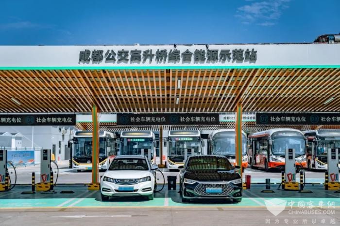 成都公交继续深化“公交+能源”融合发展模式,探索更多绿色低碳的新路径,率先在高升桥场站探索布局光伏发电设施,打造出成都公交首个集分布式光伏、工商业储能、V2G充放电、液冷超充等功能于一体的“光储充”高升桥综合能源示范站,推出20个“光伏充电”社会共享充电车位,提供24小时充电服务,其中2个车位为480千瓦“液冷超充”,新能源车主可享受“一杯咖啡的时间,即可满电出发”的快充体验。