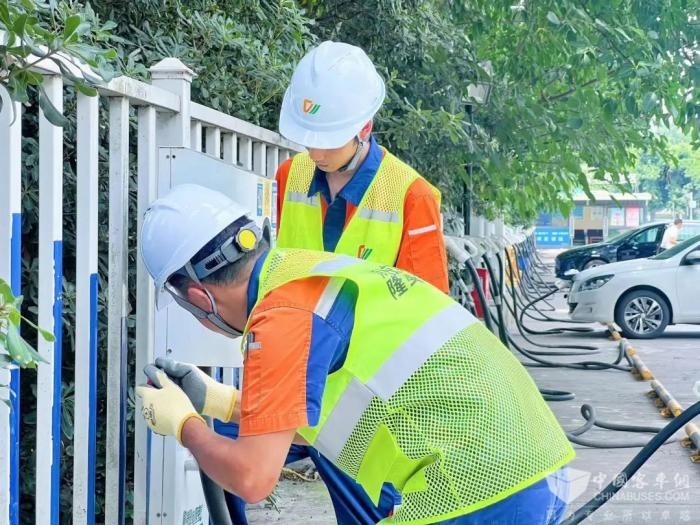 成都公交依托公交运营主业资源优势,组建了一支由5名“成都工匠”、14名“诸葛工匠”牵头,二十余名专业维修技术人员做技术支撑的“桩医生”服务团队,为各类充电桩设备提供24小时巡检,一站式、全生命周期的维保服务,确保充电设备完好率,减少故障发生,保障车主能够享受到安全高效的充电服务。