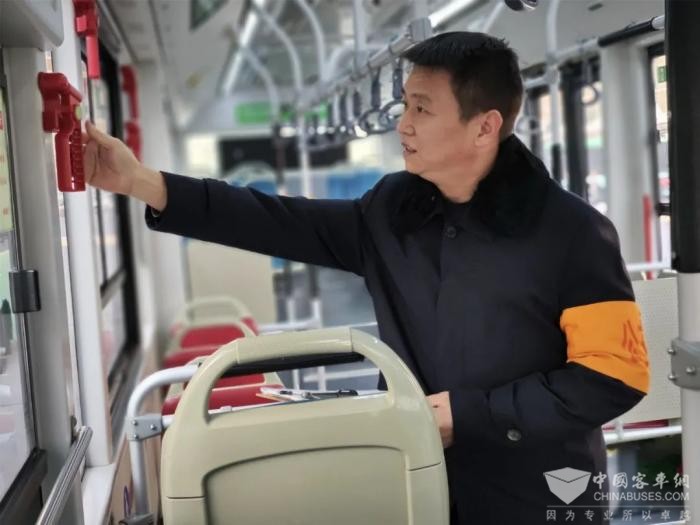 据韩涛介绍,在对公交车辆的常态化安全检查项目中,主要包含车载消防设施、逃生通道以及车辆灯光等多个方面内容:要检查灭火器、安全锤是否齐全有效,确保在火灾初期能够迅速发挥作用;要检查安全逃生通道和车门应急阀是否开启顺畅,确保紧急情况下能够快速撤离;要检查车辆灯光系统是否完好有效,确保夜间行车时的安全和顺畅。