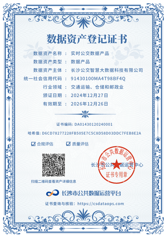 数据资产登记证书颁发 长沙公交迈出数字化转型关键一步