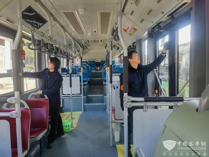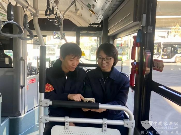 而他的妻子徐莉莎,性格开朗热情,自2018年来到公司后,也在驾驶岗位上默默坚守了多年。中午,到了夫妻二人交接班的时刻。朱文军驾车缓缓驶入场站,而徐莉莎早已带着满脸笑容等候在那里。朱文军简单明了地向妻子交代车辆上午的运行情况,包括是否有小问题、哪些站点客流量大等。徐莉莎一边认真听,一边手脚麻利地检查车辆状况,再次确认各项设备是否正常。