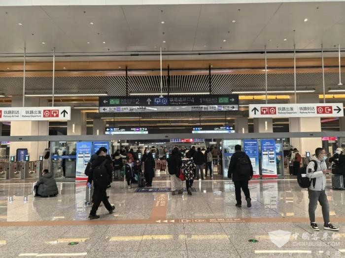 下午2点多,朝阳站交通枢纽客流平稳,去往东北方向的旅客有序进出国铁站区,换乘公交、地铁等市内交通方式进行集散。作为枢纽开站后经历的第一次春运,运营单位将根据客流情况,提供各类引导和服务。