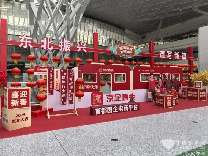 朝阳站枢纽内设置京企直卖年货大集活动/记者拍摄