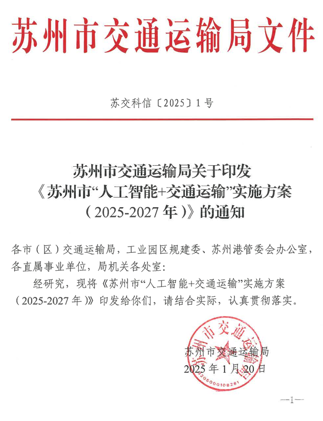 《苏州市“人工智能+交通运输”实施方案(2025-2027年)》发布!
