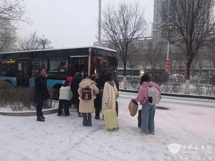 2025年1月24日晚,受暴雪影响,大量旅客滞留包头东河机场。市公交运输集团紧急调派车辆,完成旅客转运疏散任务。