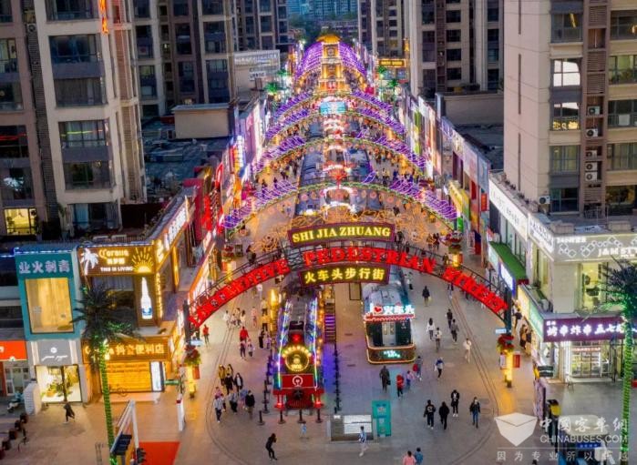 湾里庙步行街全长1080米,占地30公顷,2020年7月入选国家商务部第二批“全国示范步行街试点”。改造提升后的步行街围绕“一轴、三段、两片区、四特色、多秀场”的景观结构,以天幕广场、月季广场、水幕广场为重要节点,打造集休闲娱乐、购物餐饮、城市观光等功能于一体的智慧街区、低碳街区、有声街区、文创街区,实现石家庄历史文化和现代商业的完美结合,一些石家庄本地元素和历史文化“镶嵌”到街区重要节点,以声、光、景、演等不同展现形式,实现情景再现、街景融合,让人们在体验现代商业氛围的同时,感受到浓浓的“石家庄味道”。