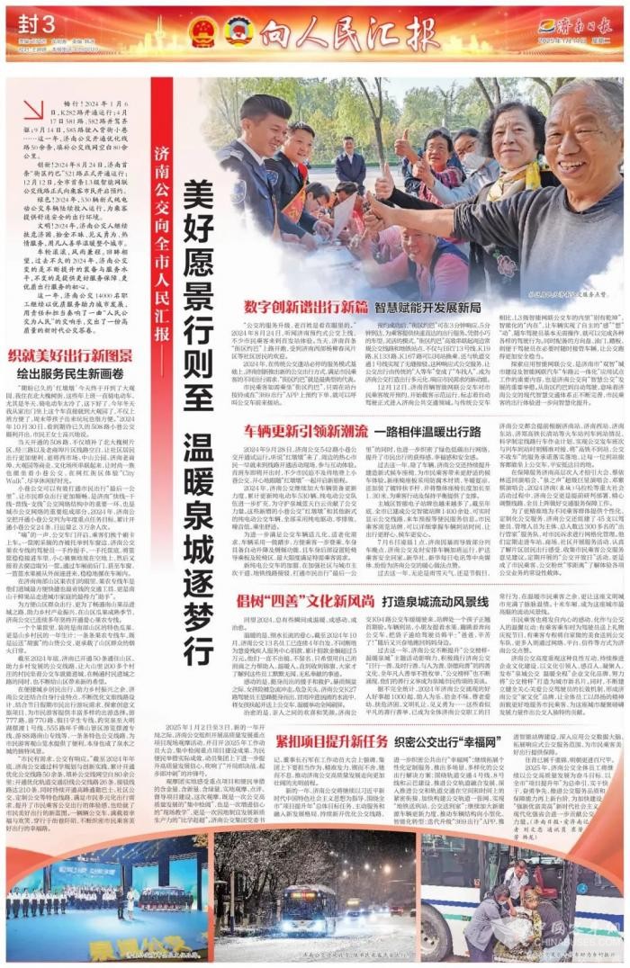2025年,济南公交全体员工将继续以公交高质量发展为奋斗目标,以全市“项目提升年”为总牵引,实干快干,奋勇争先,推进公交服务品质和保障能力再上新台阶,为加快建设“强新优富美高”新时代社会主义现代化强省会进一步贡献公交力量。