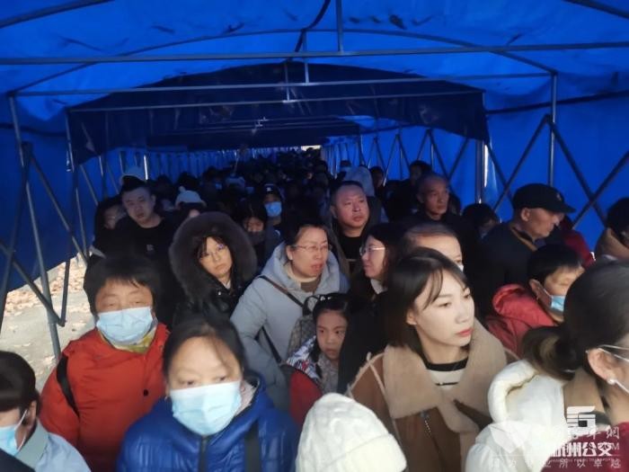 面对源源不断的游客潮,公交人不断提醒大家上下台阶小心,过马路注意安全,同时引导乘客在隔离栏外分流,在公交站内有秩序地上下车。