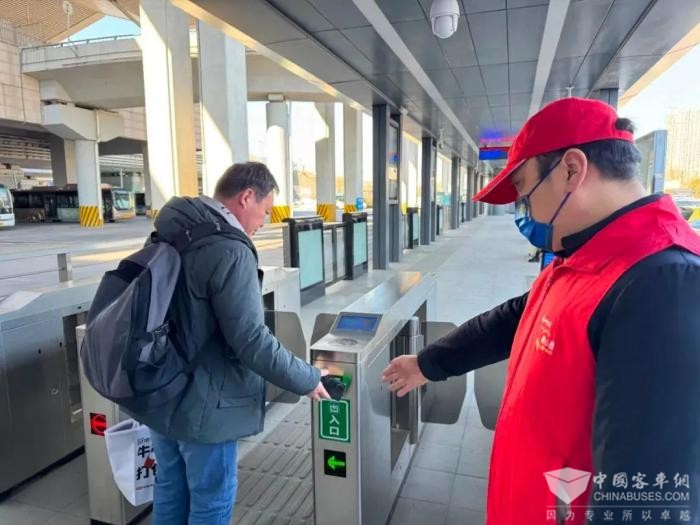 郑州东站BRT站台内,郑州公交“微心愿”志愿者也在忙碌着,志愿者们以热情饱满的精神状态,为乘客提供导乘指引、秩序维护、行李搬运等服务,对老人、儿童等重点乘客给予及时的帮助,营造温馨和谐的交通出行环境。同时,全体公交站务长加强“三品检查”,防止乘客携带易燃、易爆、危险品进站,筑牢安全第一道防线。