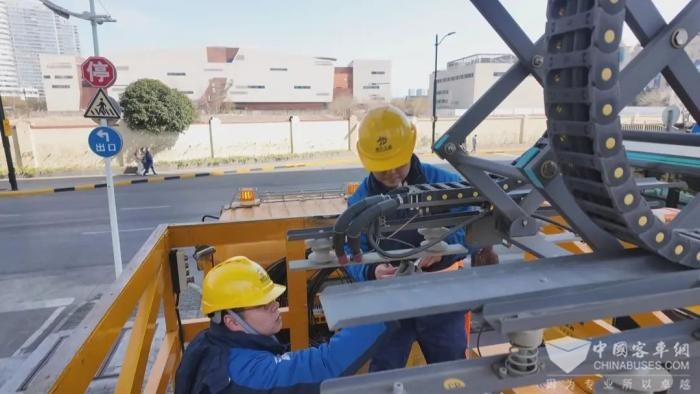 随着寒潮的逼近,全线使用超级电容车的公交车队正面临着严峻考验。为确保车辆安全有序运营,久事公交集团现代交通公司下压式抢修班组迅速行动,对全市所有超级电容车的受电弓进行了全面性能维护。