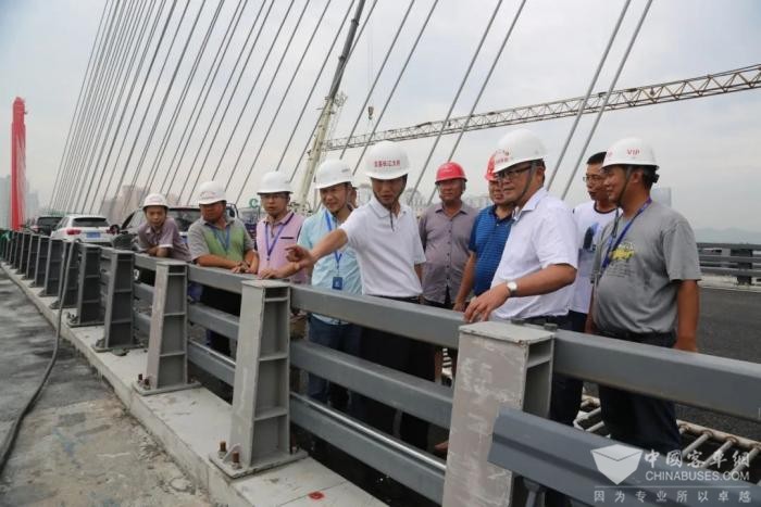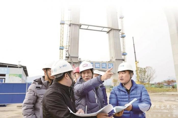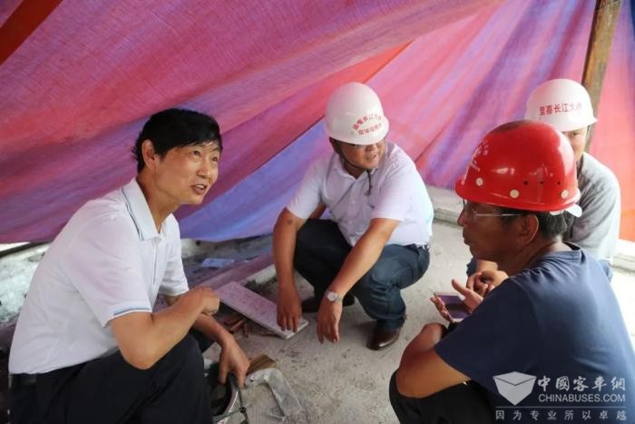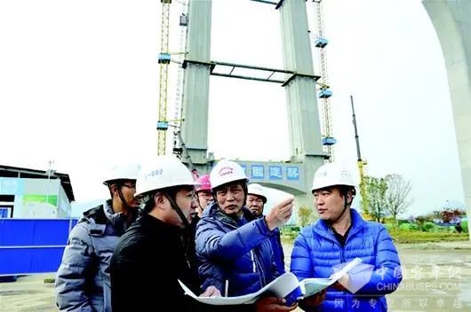 周昌栋(前排右二)在伍家岗大桥工地上 景卫东摄