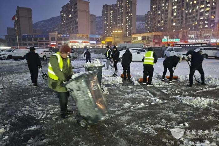 地面的冰雪逐渐被清理干净