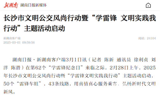 发布时间:2025年03月06日 11:29 作者:小小 来源:长沙公交集团