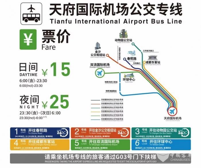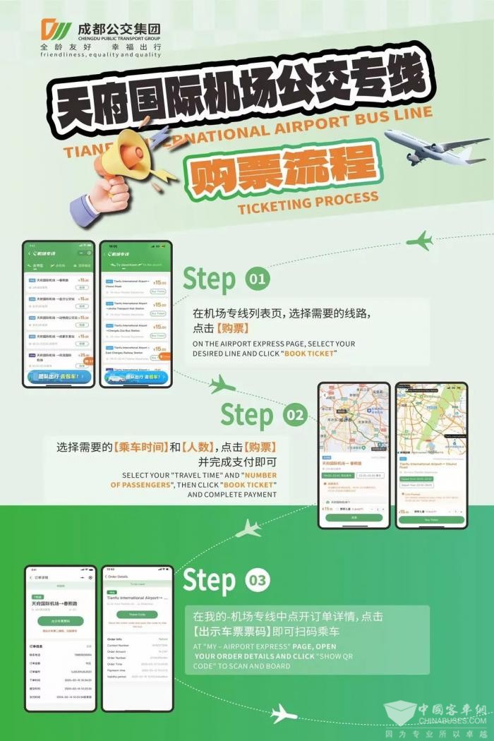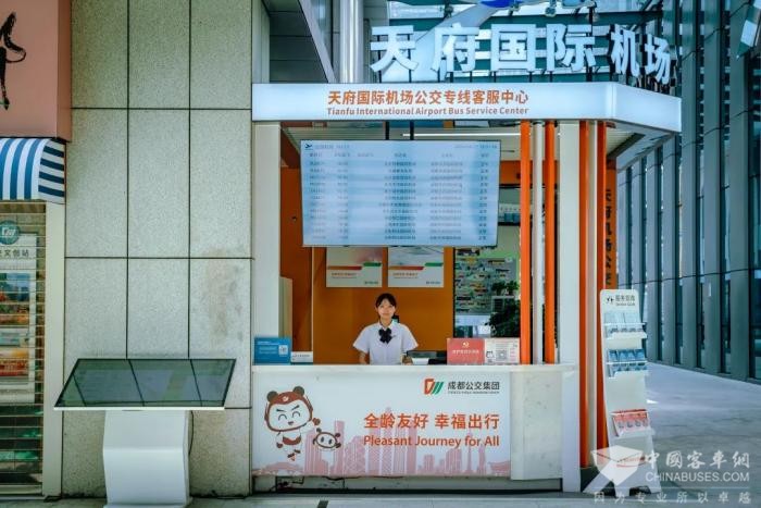 两年来,成都公交同步推出“空巴联运”服务,选乘四川航空、南方航空、同程旅行的市民旅客,可在对应航空服务APP上免费预订、乘坐天府国际机场公交专线,在任意机场巴士乘车点凭二维码刷码乘车,实现地空“无缝换乘”;在天府国际机场T1航站楼、T2航站楼、春熙路、金沙公交枢纽站、动物园公交站、成都东客站6座天府国际机场公交专线客服中心还提供乘车咨询、休息候车、失物招领等24小时全天候专属服务,新增“航班信息显示屏”、升级双语服务标识及站内指引,开通“国际版AliPay”(支持境外银行卡绑定),支持VISA、MASTERCARD等消费功能的POS机,国内外旅客在客服中心实现便捷自助购票,也可使用成都公交APP或成都公交微信小程序、支付宝小程序购票(以上渠道均有中英文版本)。