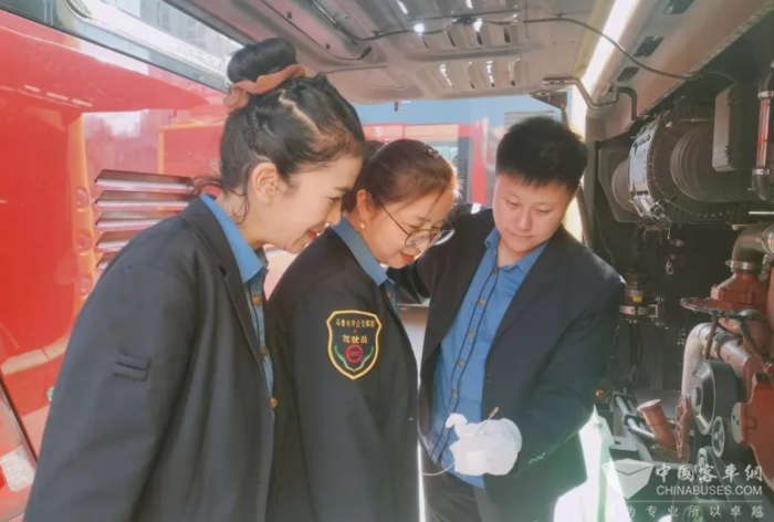45岁的袁媛是车队里的“万事通”,开车维修样样精通。驾驶员乔丽萍说,她不是一般的女司机,开过东风、京华、中通、黄海、安凯……从老东风到新能源,经历了多种车型的更迭。“车方面有问题,找她准没错。”她笑着说。