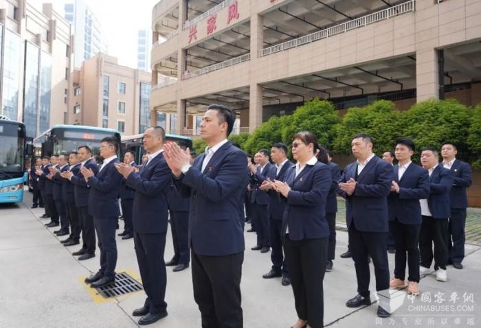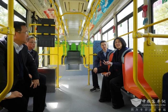 在与会人员的热烈掌声中,沈岗宣布发车。车辆缓缓驶出,马小娟等出席仪式的领导登车察看主题文化布置。