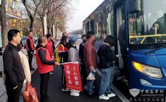 在客流比较集中的公交站点,志愿者们身披红马甲,耐心引导乘客有序乘车,对于不熟悉呼市的游客,志愿者帮助乘客规划最佳出行路线、介绍热门景点。同时,还积极宣传文明出行理念,对不文明行为进行善意劝导,维护公交站点的良好秩序与环境卫生。