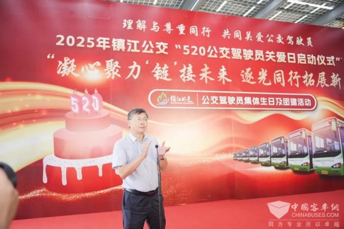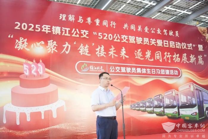 2025年5月16日,镇江公交“5.20公交驾驶员关爱日”启动仪式暨“凝心聚力‘链’接未来、逐光同行拓展新篇”公交驾驶员集体生日及团建活动在镇江科技新城东园公交枢纽站举行。市交通产业集团有限公司党委副书记、总经理蔡超,市交通运输局党委委员、副局长周明盛,市交通运输综合行政执法支队党委书记、支队长凌建锋,市公路事业发展中心党委副书记、副主任卞贻辉,市综合交通事业发展中心党总支副书记、副主任葛鸣明,市港航事业发展中心党委委员、纪委书记徐璟和业务单位领导、乘客代表、公交驾驶员代表共计120余人参加了活动。