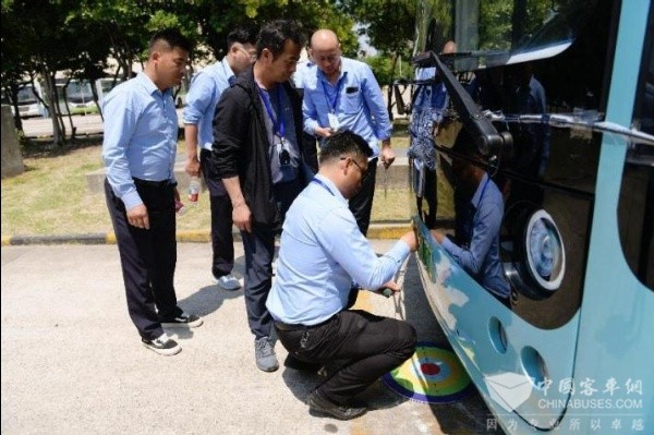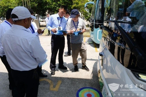 本次技能大赛分10.5米纯电动车、8米纯电动车、10.5米氢燃料电池车三个车型,设置理论知识考核、驾驶技能、例行保养、排除故障四项内容。