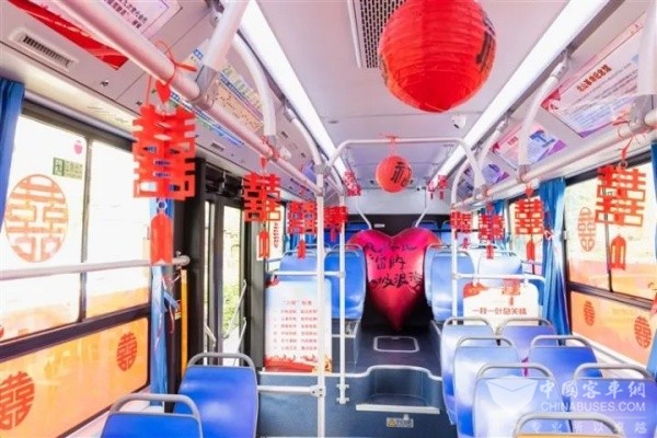 2023年国庆期间,新娘吴女士和新郎创新选择了公交婚车。“我当了好几次伴娘,每次都坐的是常见的小轿车,一车人互不认识,一路上无交流,很尴尬。”吴女士说,租公交车当婚车是她的主意。她希望将双方互相认识又特别重要的朋友聚在一辆车上,既热闹喜庆,又低碳环保。于是,她请花艺师舅妈精心装饰公交婚车:车头向日葵花束向阳而生,车厢里国旗与喜字洋溢着喜庆。接亲途中等绿灯时,亲友团还向附近车道的车主派发喜糖,分享喜悦,当然,他们也收获了陌生人的衷心祝福。“这场公交婚礼,让人终生难忘。”吴女士开心地表示。