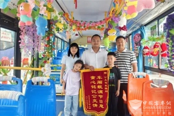 坐在这辆童话巴士上,孩子们开心地叽叽喳喳。驾驶员平稳驶过每个弯道,整个过程耐心地为老师和孩子服务,让大家非常感动。后来,该园老师带着两名小朋友给驾驶员送去了锦旗,锦旗上书“车厢载满节日意,童心铭记公交情”。