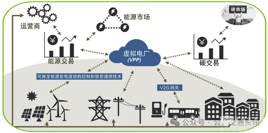 随着“双碳”目标已经列入城市公共交通重要任务之一,电动公交车车已成为城市交通“双碳”的重要载体。虚拟发电厂(VPP)与车辆到电网(V2G)技术的深度融合,为公交能源革命提供了全新的解决方案。通过将电动公交车集群转化为“移动储能单元”,不仅优化了电网的稳定性,更重构了交通与能源的协同生态,开启了一场关乎效率、经济与环保的系统性变革。而“VPP+V2G” 的技术融合,这一创新模式正开启公交能耗格局的颠覆性变革。
