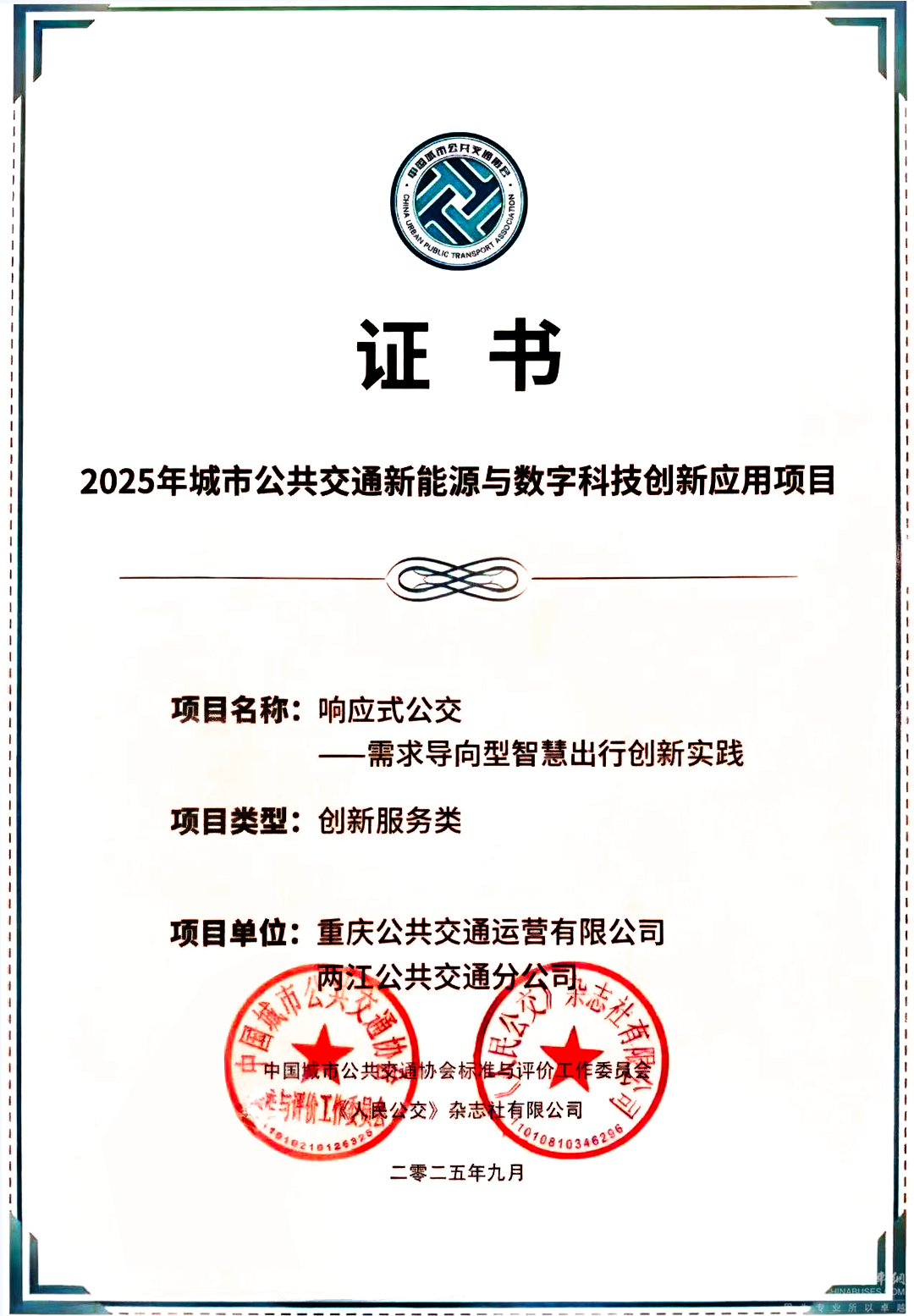在第二届(广州)国际公共交通新能源和数字科技产业博览会上,重庆公交两江分公司的“响应式公交—需求导向型智慧出行创新实践”项目,被评为“2025年城市公共交通新能源与数字科技创新应用项目”。