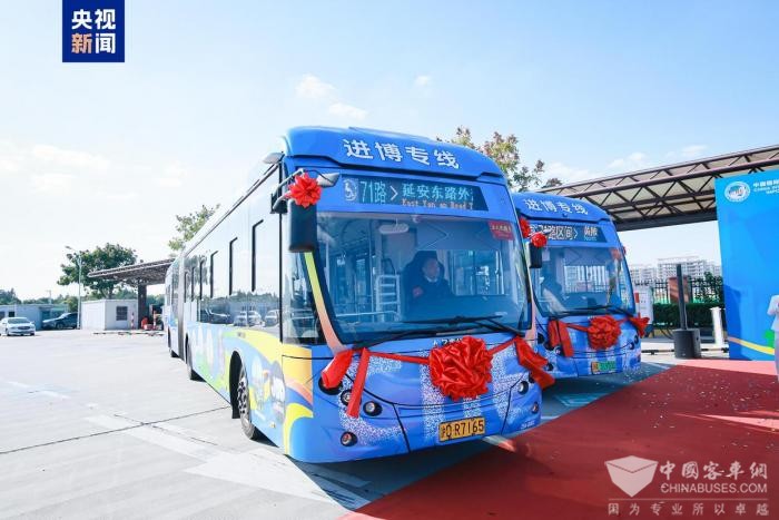 8辆“进博专线”贯穿上海东西向为展客商提供从外滩到国家会展中心往返交通便利的同时,巡游于市中心商业动脉,串联起淮海路、静安寺、徐家汇、北外滩等热门商圈,讲述沪上“红色记忆”。同时,推出进博会展期内持证人员免票乘坐71路福利,提升进博会海内外展客商获得感。