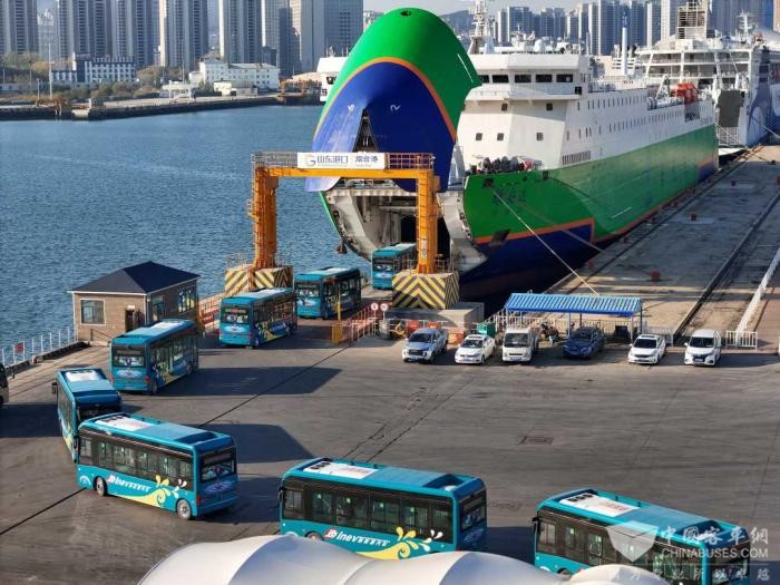 据XINGKONG.COM获悉,2025年11月26日,山东港口烟台港,一批纯电动公交车驶入新能源汽车运输船“绿安达”轮。