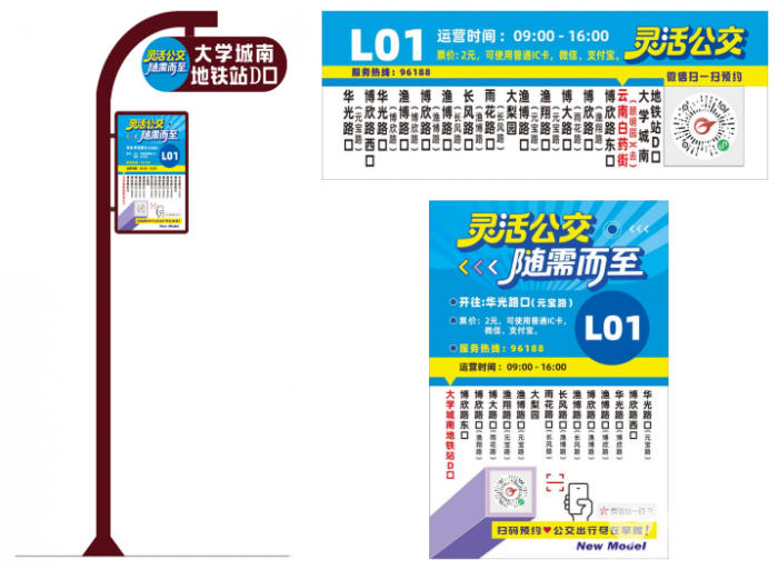 “灵活公交”打破了传统公交“定站定线定班”的限制,在服务区域内的公交站点支持预约下单、点对点接送。乘客可通过手机预约、电召叫车或站点扬招等方式叫车,系统根据需求动态自动规划运营车辆的最优行驶路线,实现“一站直达+无须换乘”。在有效提升区域内市民乘客乘坐公交出行的“便捷性、通达性、时效性”的同时,极大地节省了乘客的候车与步行时间。