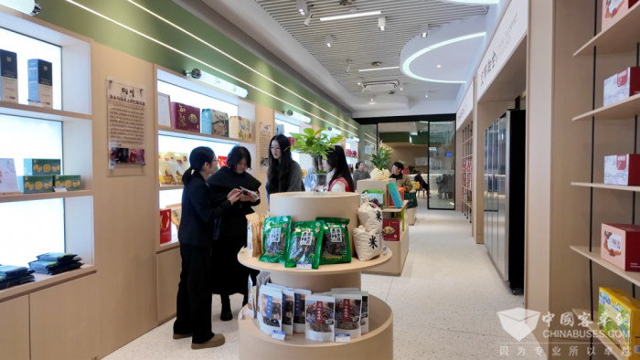 台州山海相拥,物产丰饶,但许多优质的农副产品,受制于“运输难、流通慢、销路窄”因素,面临着“好货难出村”的困境。市公交集团充分发挥自身优势,整合运输保障体系、公交场站设施、城乡惠民纽带、客流辐射能力等资源,创新模式、强化服务,联合中国邮政集团台州分公司在公交TOD场站候车厅旁设立共富工坊,设置本地特色农副产品、对口支援地区产品、进口商品展示等功能区域,以形成良好的辐射效应、帮扶效应、带富效应、互促效应和示范效应。