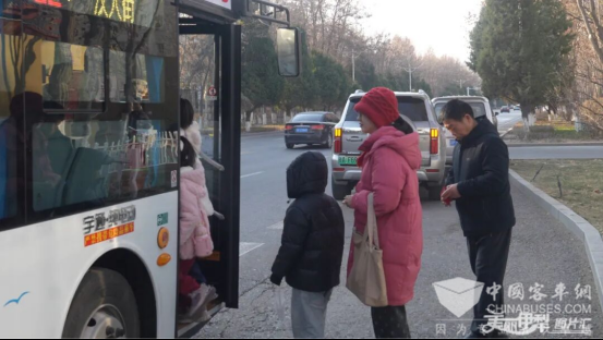 【市民乘坐新投入运营的新能源公交车出行】