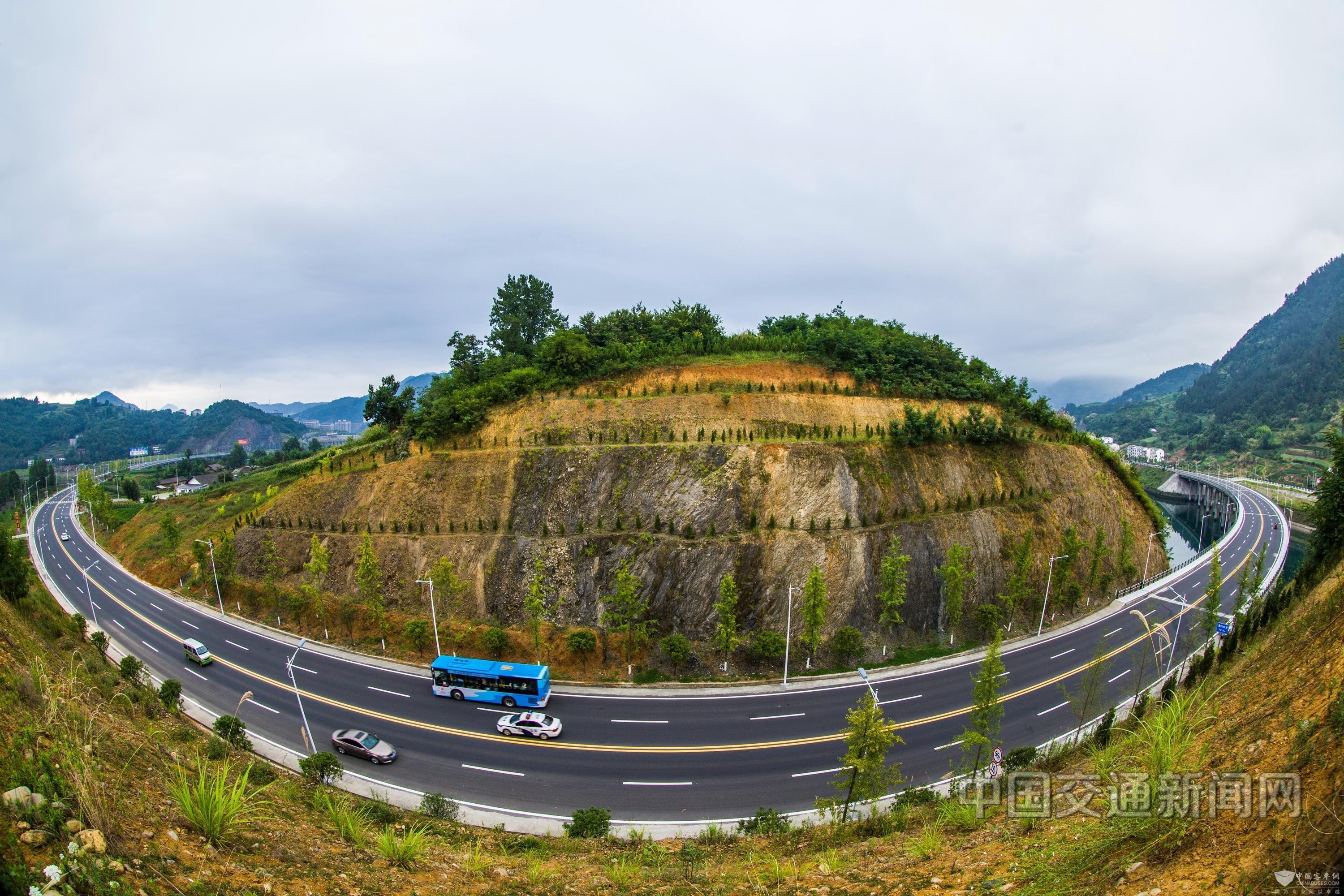 公交车行驶在竹山县城乡公路上。