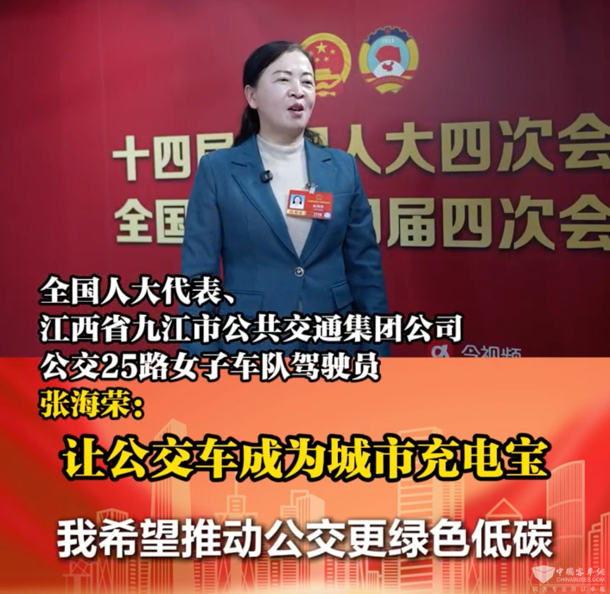 3月4日,2026年全国两会在北京召开,全国人大代表、江西省九江市公共交通集团公司公交25路女子车队驾驶员张海荣:在城市公交推广V2G(车辆到电网)技术,让公交车成为城市的“充电宝”。
