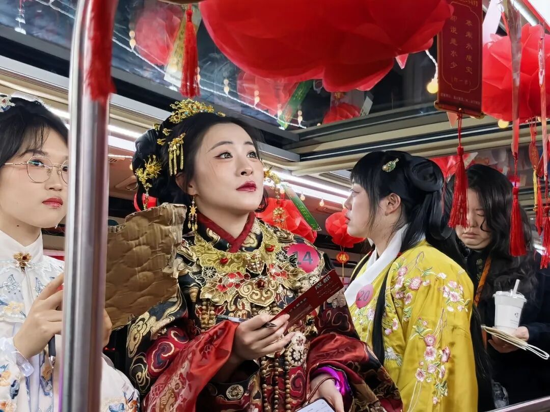 蓉火火茶歇巴士车厢内灯笼高挂,发光“琉璃盏碎片”暗藏剧情线索,乘客佩戴专属打卡手环,沉浸式参与《巴士迷途・元宵夜未央》剧本体验,竞猜80条灯谜、推理剧情线索、完成互动任务,让巴士变身移动的元宵游园会。