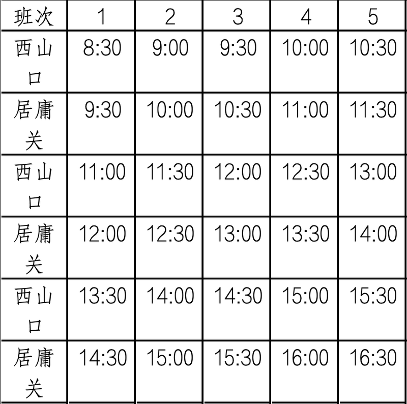 居庸关站 首班:9:30,末班:16:30(节假日运营)