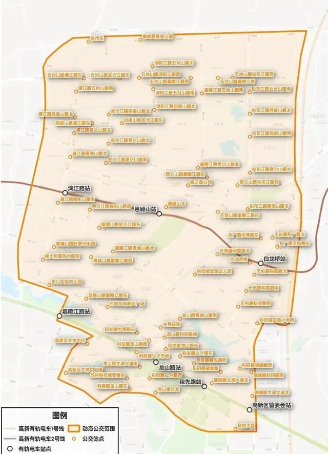 此次动态公交试点范围包括苏州科技城北部片区,北至秦岭路、东至潇湘路、南至武夷山路/科普路、西至230省道,全面覆盖片区内大院大所、大型企业、商业综合体及新区行政中心,高效接驳有轨电车1、2号线,计划在范围内投入8辆动态公交车。线路票价1元,运营时间为工作日7:30—20:30。