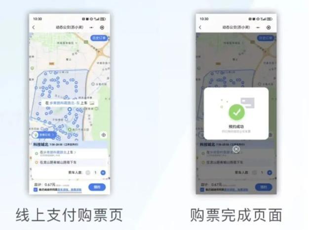 支付方式:支持线上、线下两种购票模式。线上支付时,会根据乘车人数等信息,自动计算需支付的金额,点击“购票”按钮按实际票价进行支付。线下支付时,可点击“预约”按钮,完成乘车预约,预约后,乘客在上车点等候,上车后选择刷卡或投币等多种方式进行支付。