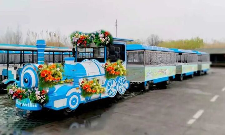 景区内的湿地小火车被缤纷花艺环绕