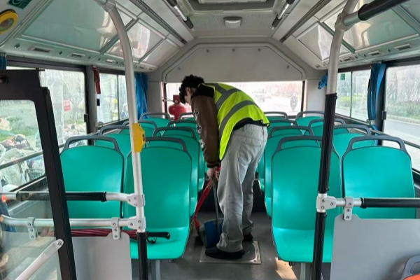 针对清明祭扫期间大客流、高频次运营的特点,后勤保障中心明确保洁工作标准,严格执行“一趟一清扫”的制度,重点加强车厢扶手、座椅、车门等乘客高频接触部位的清洁消杀力度,最大限度降低卫生安全隐患。保洁人员每天清晨6点半准时到岗,每辆车的清洁时长不少于20分钟,手套被汗水浸透、额头的汗珠顺着脸颊滑落,他们却丝毫没有放慢手中的动作,用辛勤的汗水为市民打造干净、整洁的出行环境,全力保障扫墓专线运输服务平稳有序。