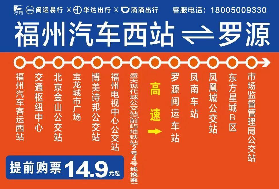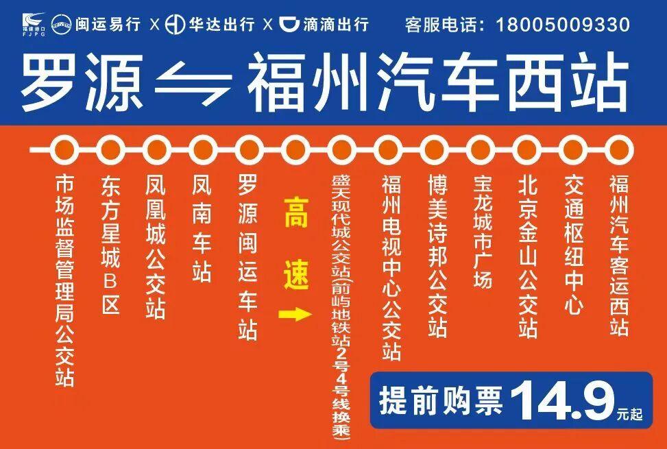继罗源⇄福州汽车北站线路开通,罗源⇄福州汽车西站线路将上线,串联前屿地铁站(可换乘地铁2号线、4号线)、远洋路、国货东路、苏宁广场、宝龙城市广场、金山住宅区、福州汽车西站,进一步打通罗源至福州市区往返通道。
