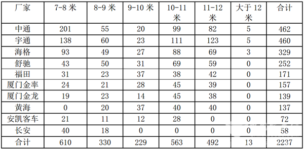 2、属地企业中通客车占尽天时地利人和,销量居于老大。其次是宇通客车。而宇通10米以上大型客车表现最好。另外属地客车企业舒驰表现也比较抢眼。