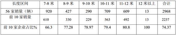 特点三、前10家客车企业市场垄断程度随着车型长度增加而增加